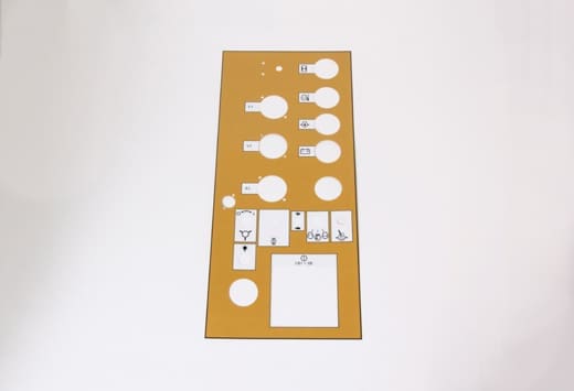 En ayant recours à la sérigraphie et/ou à l’impression numérique, nous produisons les messages pour les panneaux de contrôle. Les impressions peuvent se faire sur du Lexan ou du polyester pour ensuite être laminées facilement à l’aide des autocollants 3M. Nous pouvons adapter les panneaux de contrôle à vos dessins d’ingénierie en perçant les trous et les fenêtres appropriés pour se conformer aux boutons, cadrans, commutateurs et écrans de vos composantes électroniques.